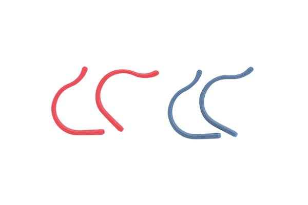 Gusanillos de silicona color burdeos para niños. Longitud total 75mm. Exterior Ø 3.8mm, interior Ø 1.3mm