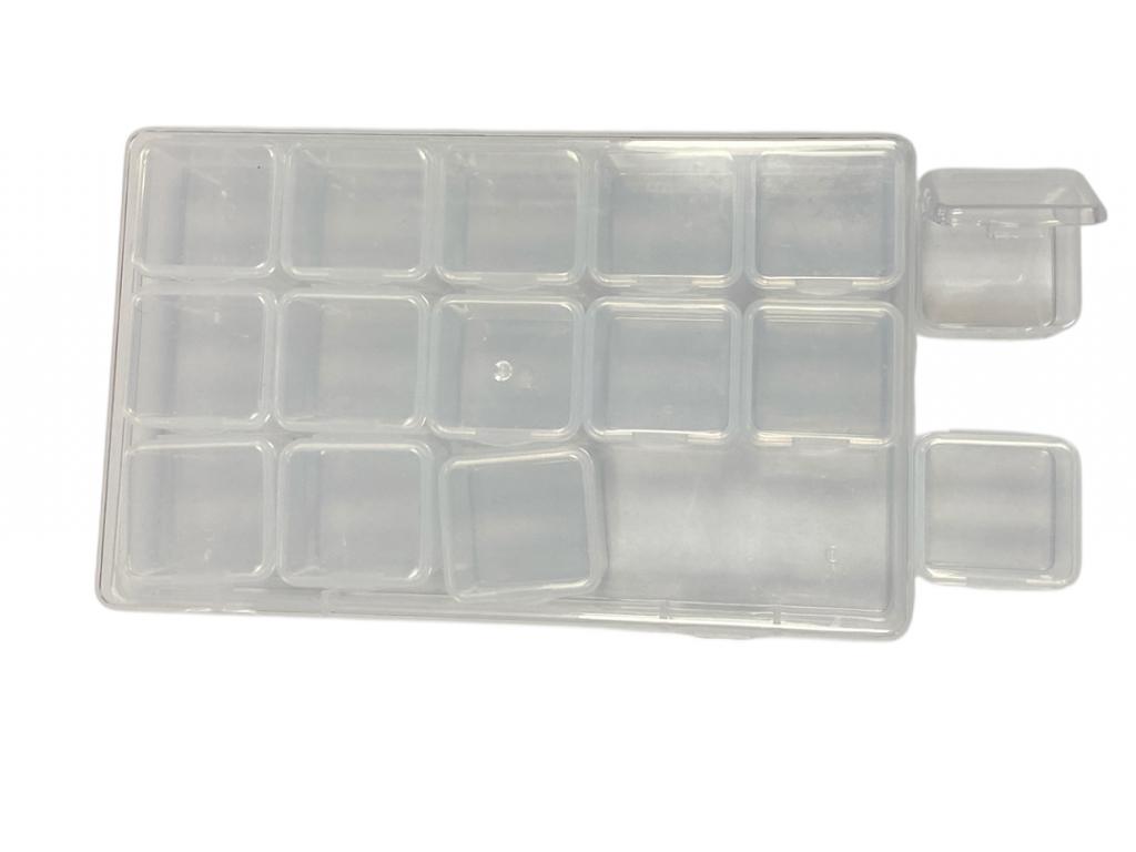 Para plaquetas o tornillos, cajitas individuales extraíbles. Medidas de la caja exterior : 17 cm X 10.40 cm X 2.5 cm. Medidas de la caja interior: 3.1 cm x 3cm x 2.2 cm.