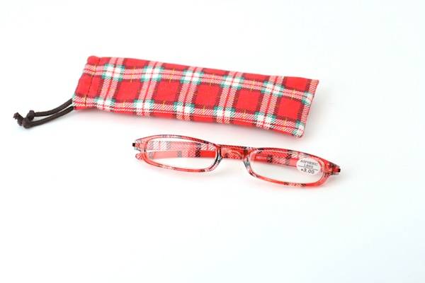Lectores estampado a cuadros en tonos rojos y con estuche a juego. Medidas: ancho,50mm/alto,19mm/puente,18mm