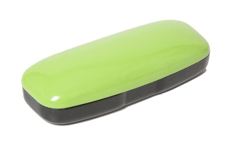 Estuche rígido metálico. Acabado en charol. Base en color negro brillante y parte superior en verde hierba brillante. PERSONALIZABLE