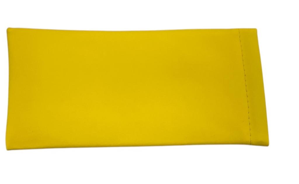 Estuche de PVC en color amarillo con apertura de flexo en la parte superior. Dimensiones: 18 x 8.8 cm
