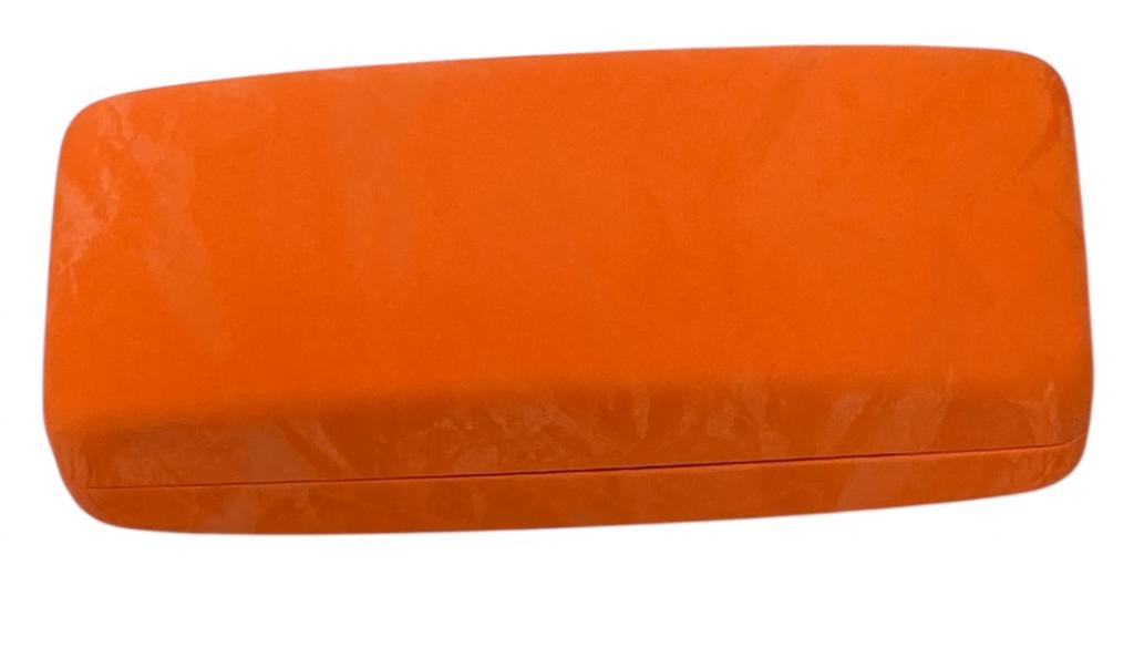 Modelo XENIA. Estuche Xenia metálico forrado en polipiel en color naranja el interior en color GRIS. Medidas: 170x67x40 Personalizable.