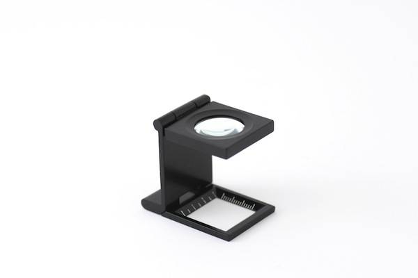 Cuentahilos de alumino negro con lente mineral. De 28 dioptrias y aumento x8. Dimensiones de la base 13mm x 13mm. Altura de 5cm. Con funda en polipiel.