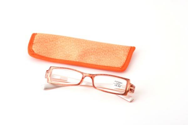 Plastic reader in orange spirals with matching pouch size 48x18x23