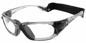 Progear sport frame in transparent grey with temples and adjustable strap. Able for prescription lenses. Size: 52x18x122