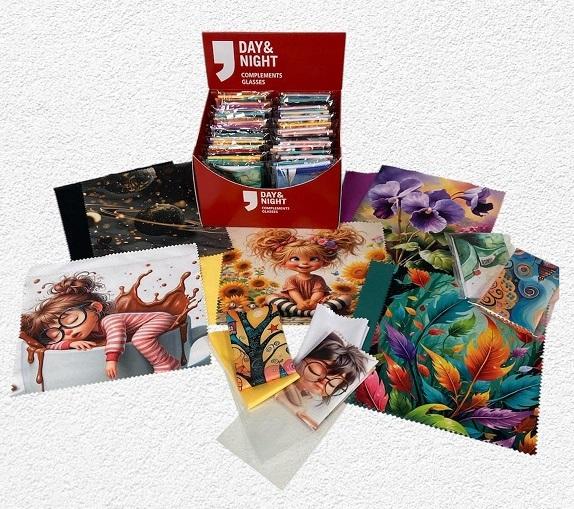 EXPOSITOR CON 35 PACKS (DIGITAL + MICROFIBRA LISA) DE GAMUZAS DE 15X18 (total de gamuzas 70 unidades)