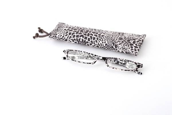 Lectores estampado felino en tonos blanco y negro y con estuche a juego. Medidas: ancho,50mm/alto,16mm/puente,18mm