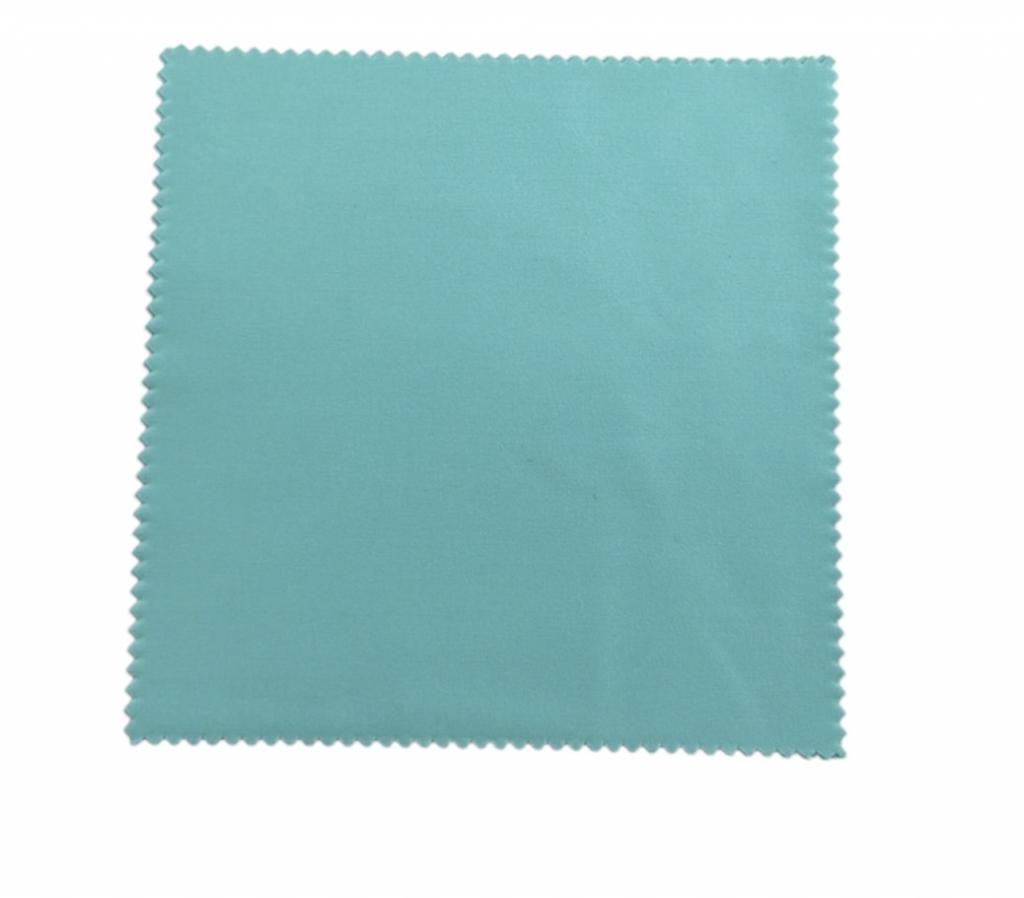 Gamuza en microfibra de alta gama PERSONALIZABLE. Color: turquesa. Tamaño: 15cm x 15cm. Acabado en zig-zag. Gramaje : 220 gr