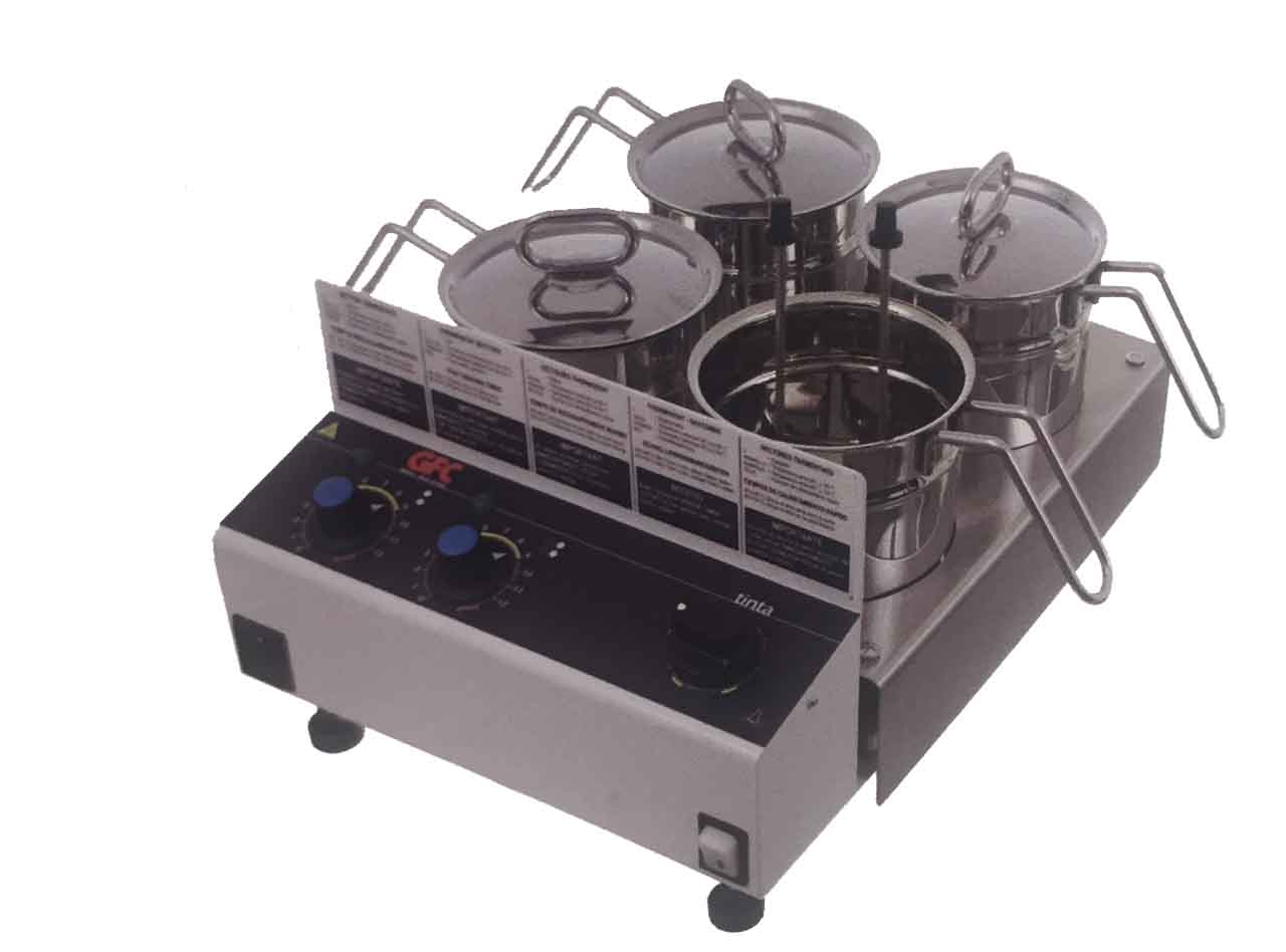 - Máquina para colorear lentes orgánicas con 4 placas eléctricas - Temporizador con alarma para regular la fase de precalentamiento - Regulador de energía (uno para cada par de placas) para el mantenimiento de cualquier temperatura durante el proceso de coloración. - Mantenimiento automático a 93 ° C aprox. durante el proceso