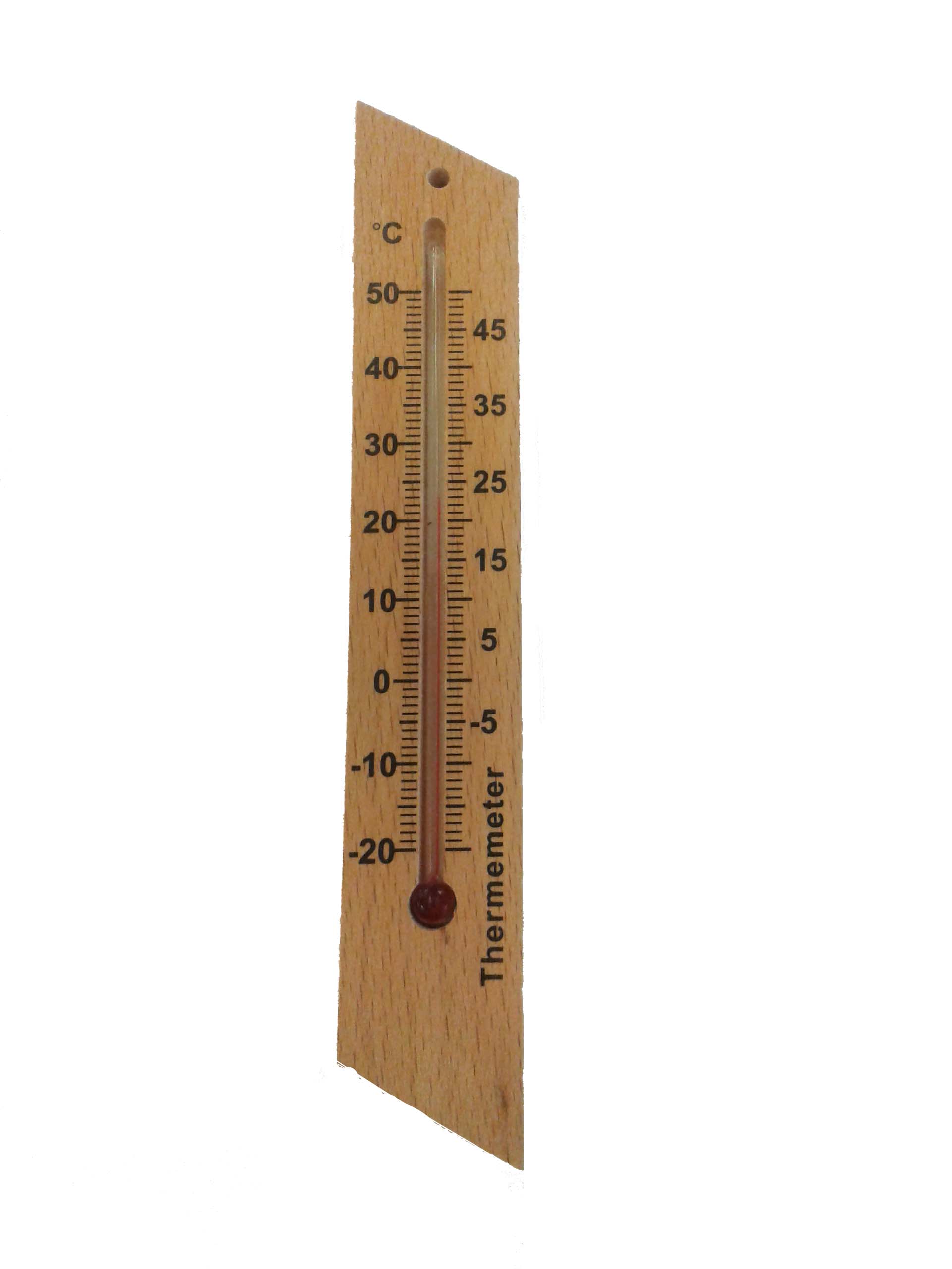 • Termómetro en madera • Medición de grados de - 20º a + 50º • Medidas: 18 cm de alto x 3 cm de ancho