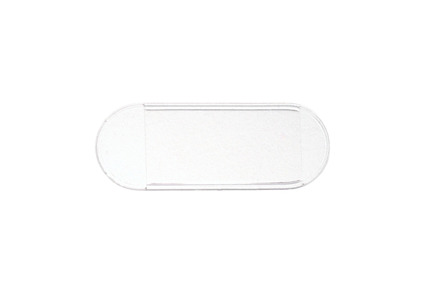 Marcaprecios transparente de 45mm x 20mm • Medida máxima del logo 2,4 x 1,2 cm • Tampografía a una sola tinta