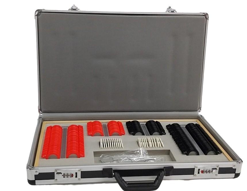 SET MALETA DE LENTES DE PRUEBA PLASTICO 228 PZS. Contenido: - Esfera: 34 pares lentes + y – - Cinlindro: 17 pares lentes + y – - Prismas: 12 lentes de 0.5º a 10º - Accesorios: disco oclusor y vidrio esmerilado. * Medidas: maletín 56x35x10cm, caja interior 53x31x35 cm