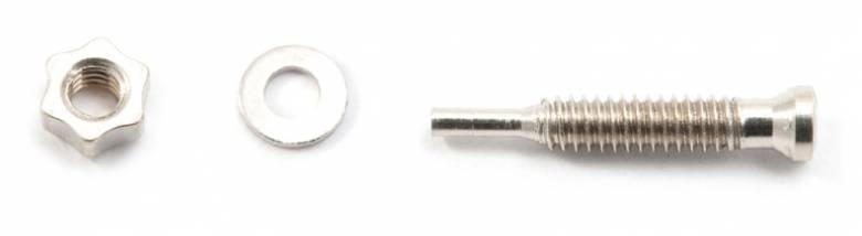 Tornillos plateados para gafas al aire. Tornillo + Tuerca + Arandela Medidas tornillo: cabezal Ø 1.8, tornillo Ø 1.4mm y longitud total de 9mm